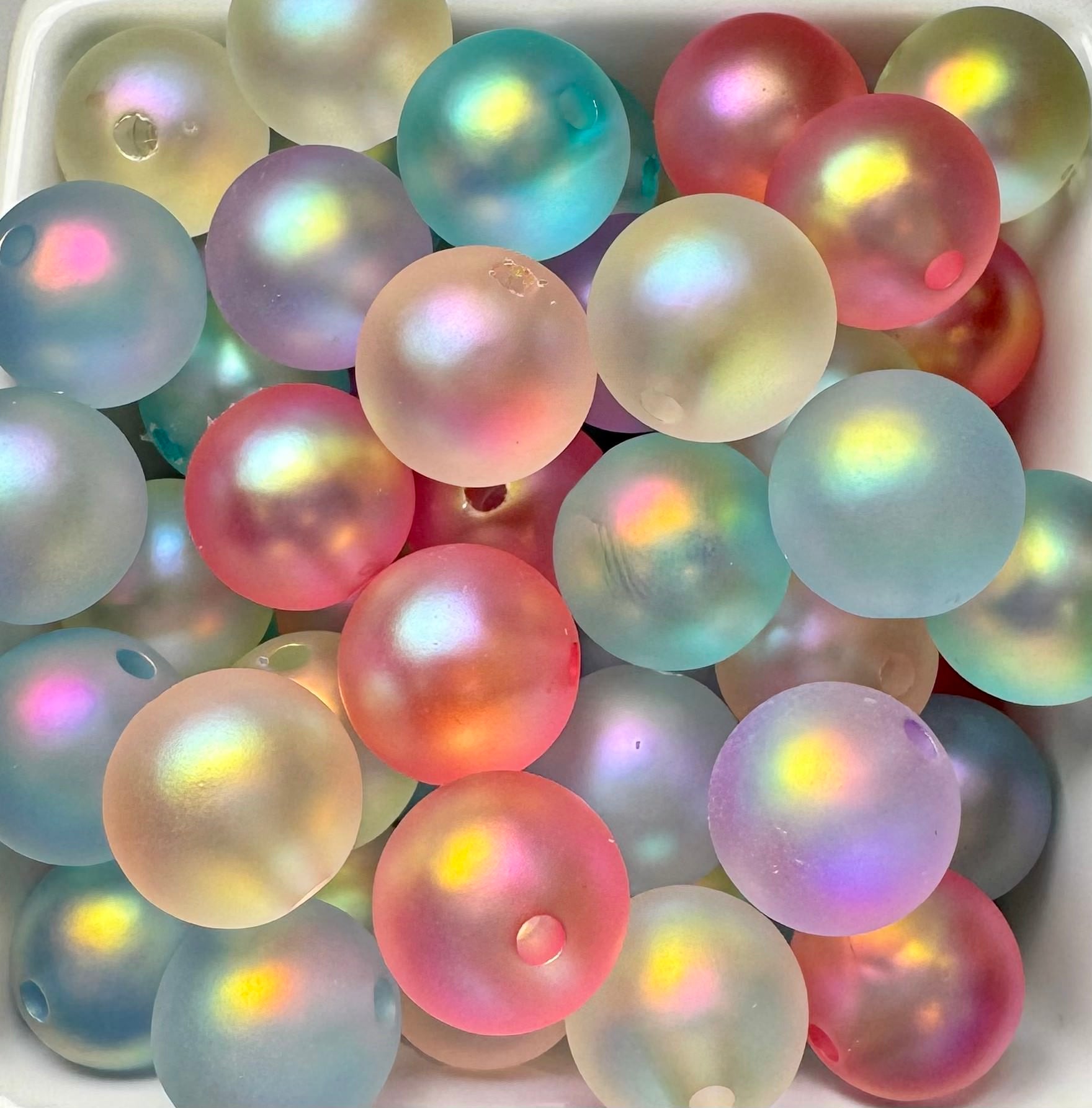 ⭐ Details: • Material: Frosted acrylic with iridescent pastel shimmer • Design: Semi-transparent pastel beads with soft rainbow glow • Size: Larger bead size, perfect for dreamy creations • Features: Lightweight, smooth, and magical with a frosted finish